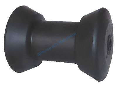 Diese Rolle wird bei Bootsanhängern als Kielrolle eingesetzt. Durch die Taillierung wird das Boot beim Aus- und Einwassern zuverlässig zentriert.