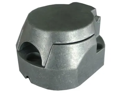 Dose aus Leichtmetall, Aluminium für Zugfahrzeuge. 7-Polig, mit Staubdeckel und Schraubanschlüssen, oval